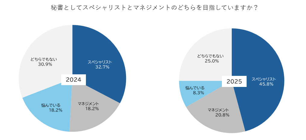 秘書が自身のキャリアパスとして、どのような方向性を志向しているのかを、2024年と2025年の傾向を比較しながら分析します。