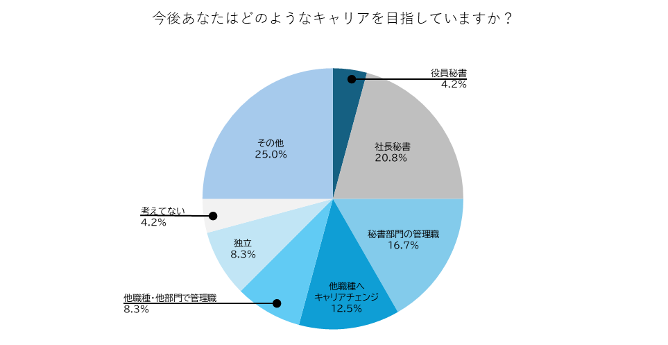 「その他」が一番多いことがキャリアパスの多様化を示唆しています。続いて「社長秘書」を目指す方が多い結果となっています。